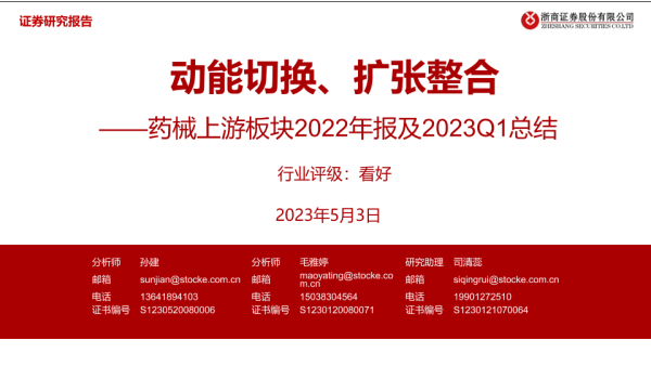 【浙商证券】【20230503】药械行业上游板块2022年报及2023Q1总结:动能切换、扩张整合-22页 行业研究