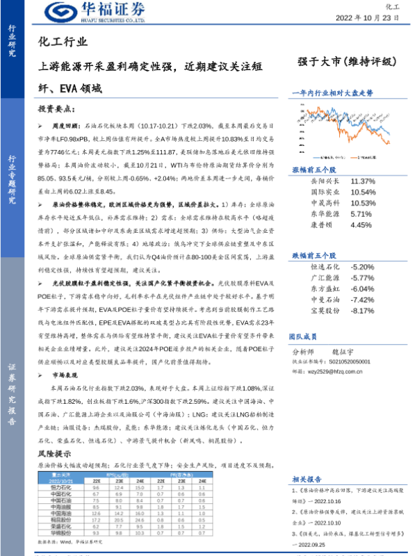 【华福证券】【20221023】化工行业专题研究:上游能源开采盈利确定性强,近期建议关注短纤、EVA领域-19页 行业研究