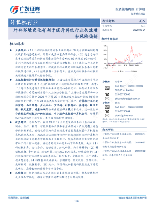 【广发证券】【20200621】20200621-广发证券-计算机行业投资策略周报:外部环境变化有利于提升科技行业关注度和风险偏好-8页 行业研究