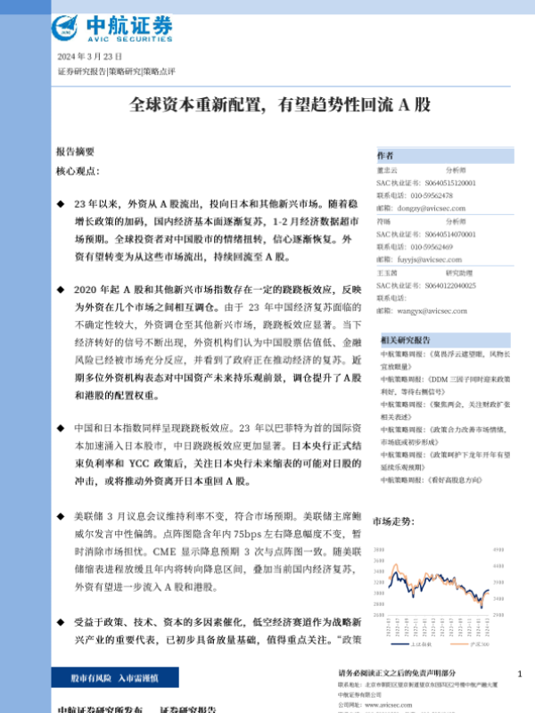 【中航证券】【202403】策略点评:全球资本重新配置,有望趋势性回流A股-10页 宏观策略