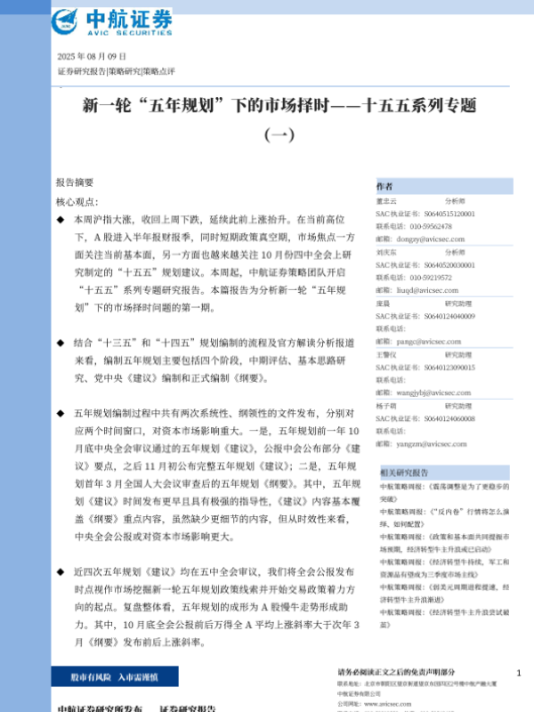【中航证券】【202508】十五五系列专题(一):新一轮“五年规划”下的市场择时-10页 证券期货研究报告