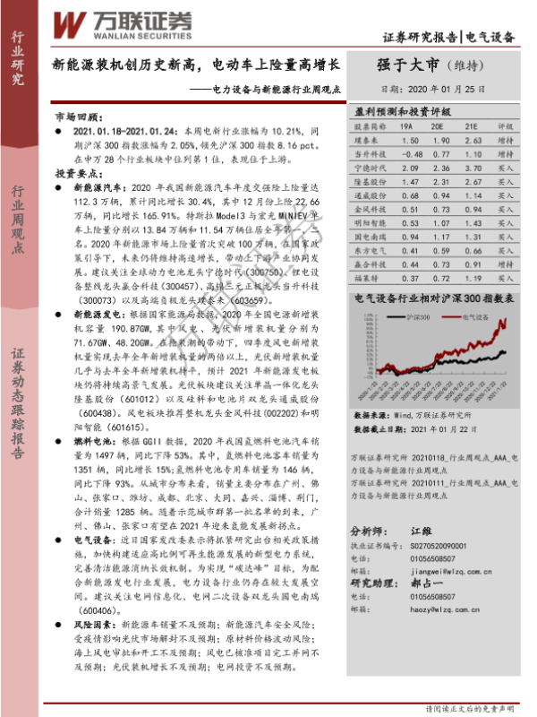 【万联证券】【20210125】电力设备与新能源行业周观点:新能源装机创历史新高,电动车上险量高增长-15页 行业研究