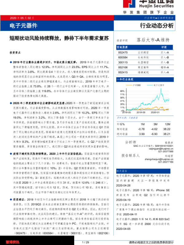 【华金证券】【20200502】电子元器件行业动态分析:短期扰动风险持续释放,静待下半年需求复苏-29页 行业研究