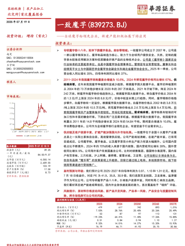 【华源证券】【20250719】一致魔芋(839273)全球魔芋粉领先企业,新建产能积极拓展下游应用-23页 公司研究