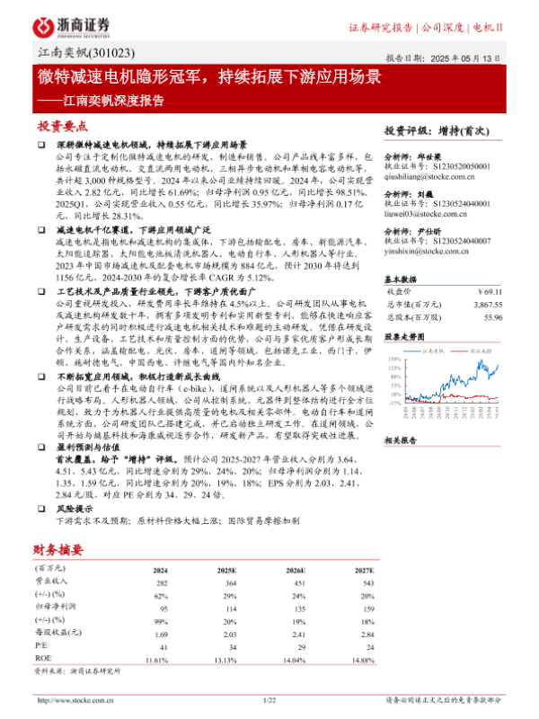 【浙商证券】【20250513】江南奕帆(301023)深度报告:微特减速电机隐形冠军,持续拓展下游应用场景-22页 证券期货研究报告