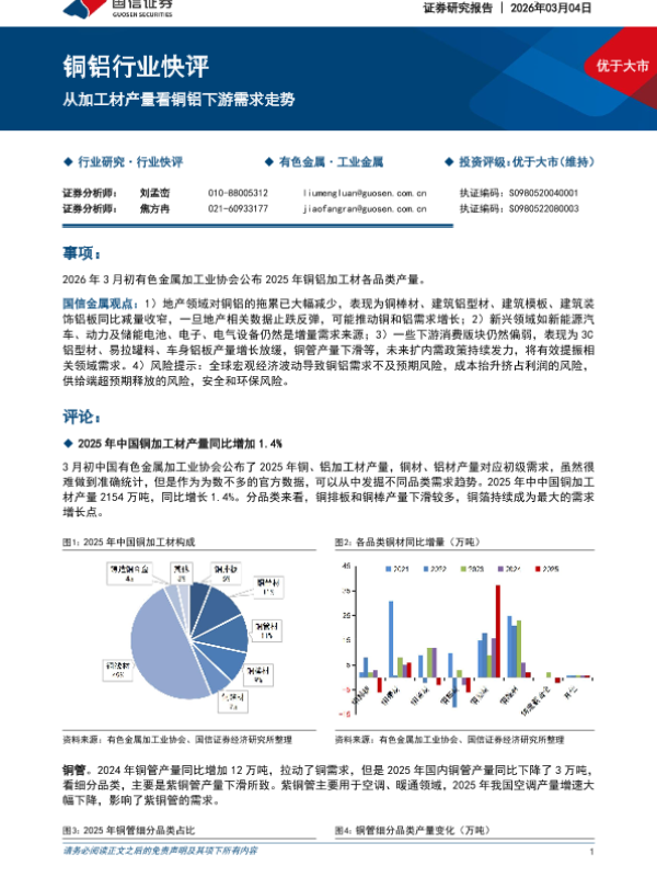 【国信证券】【202503】铜铝行业快评从加工材产量看铜铝下游需求走势-7页 行业研究