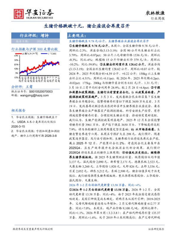 【华安证券】【202603】生猪价格跌破十元,猪企座谈会再度召开-39页 行业研究