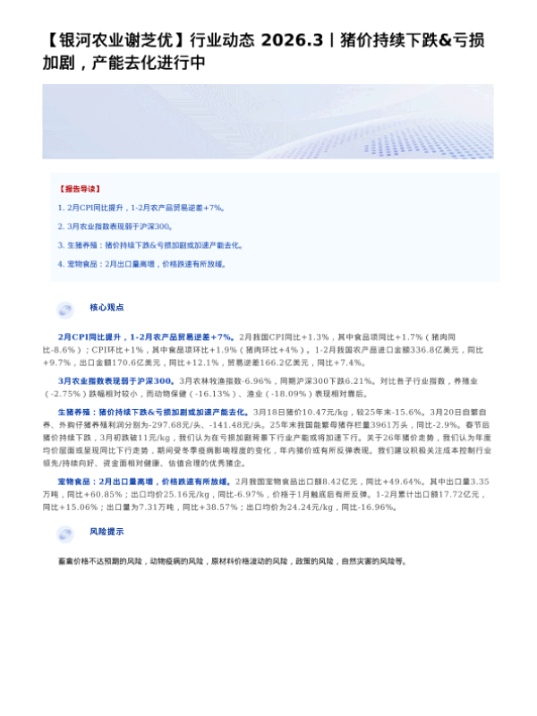 【银河证券】【202603】猪价持续下跌&亏损加剧,产能去化进行中-3页 证券期货研究报告