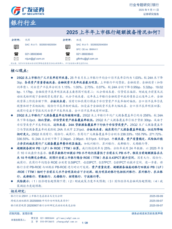 【广发证券】【202509】2025上半年上市银行超额拨备情况如何?-29页 证券期货研究报告