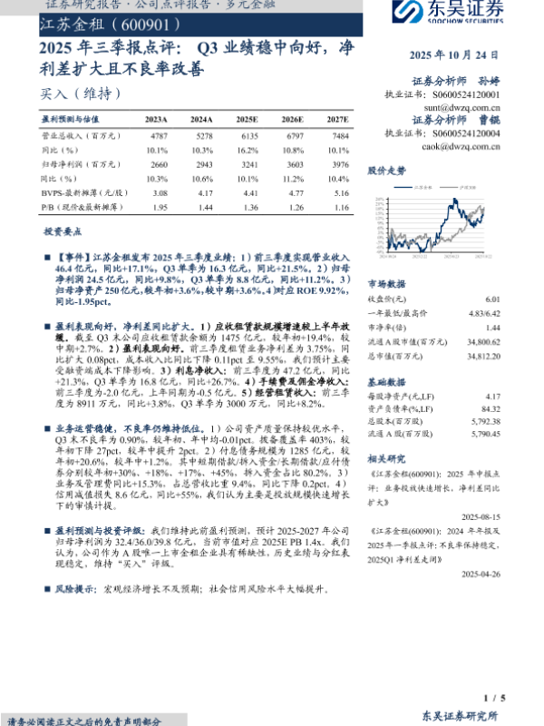 【东吴证券】【202510】2025年三季报点评:Q3业绩稳中向好,净利差扩大且不良率改善-5页 证券期货研究报告