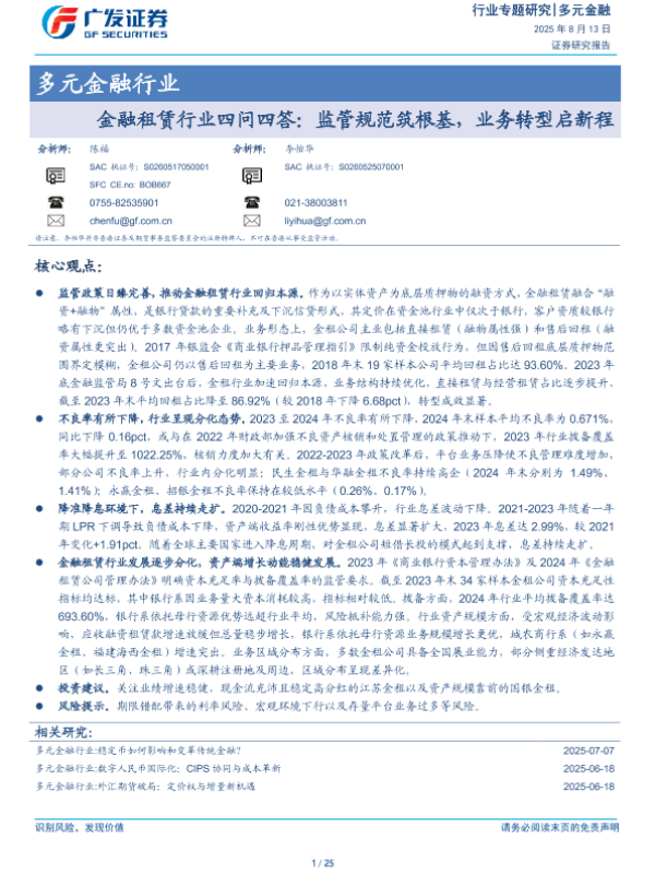 【广发证券】【202508】多元金融行业:金融租赁行业四问四答,监管规范筑根基,业务转型启新程-25页 证券期货研究报告