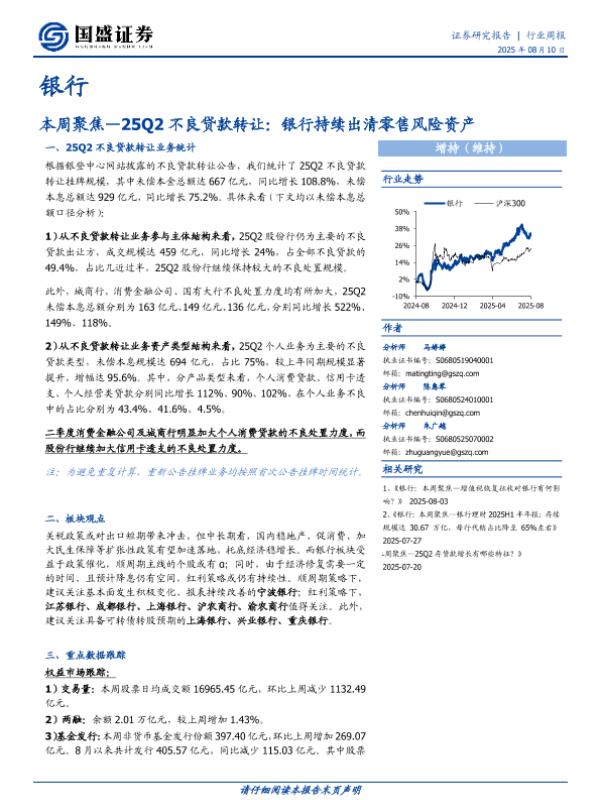 【国盛证券】【20250810】银行业本周聚焦-25Q2不良贷款转让:银行持续出清零售风险资产-12页 证券期货研究报告