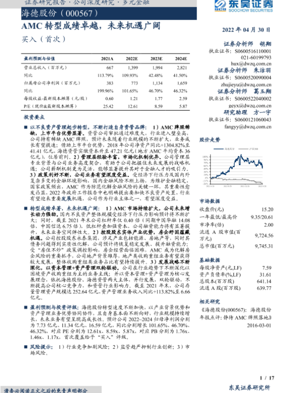 【东吴证券】【20220430】海德股份AMC转型成绩卓越,未来机遇广阔-17页 行业研究