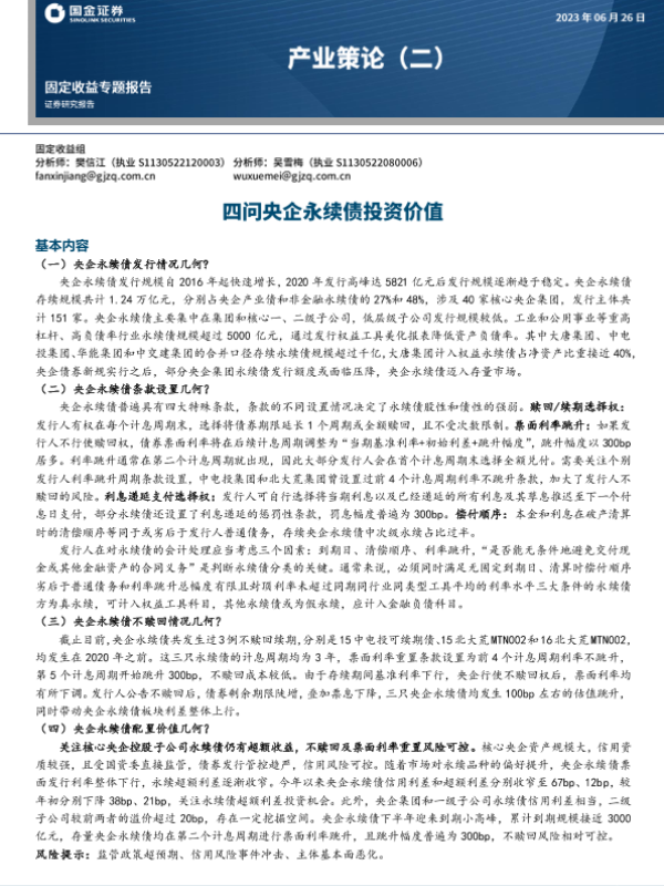 【国金证券】【20230626】产业策论(二):四问央企永续债投资价值-20页 行业研究
