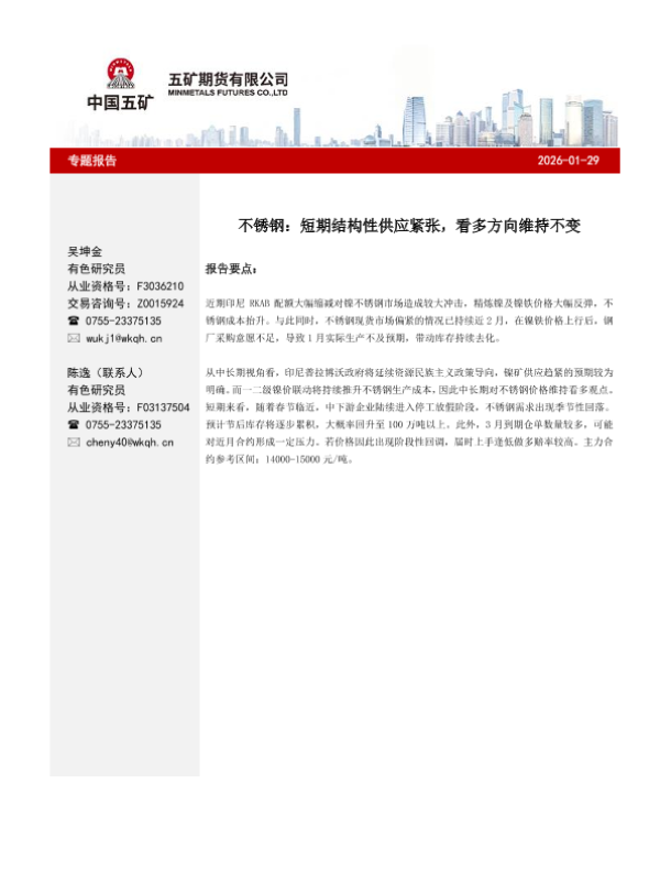 【五矿期货】【2025】不锈钢_短期结构性供应紧张_看多方向维持不变-6页 证券期货研究报告