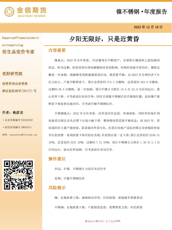 【金信期货】【20221218】镍不锈钢·年度报告:夕阳无限好,只是近黄昏-40页 行业研究