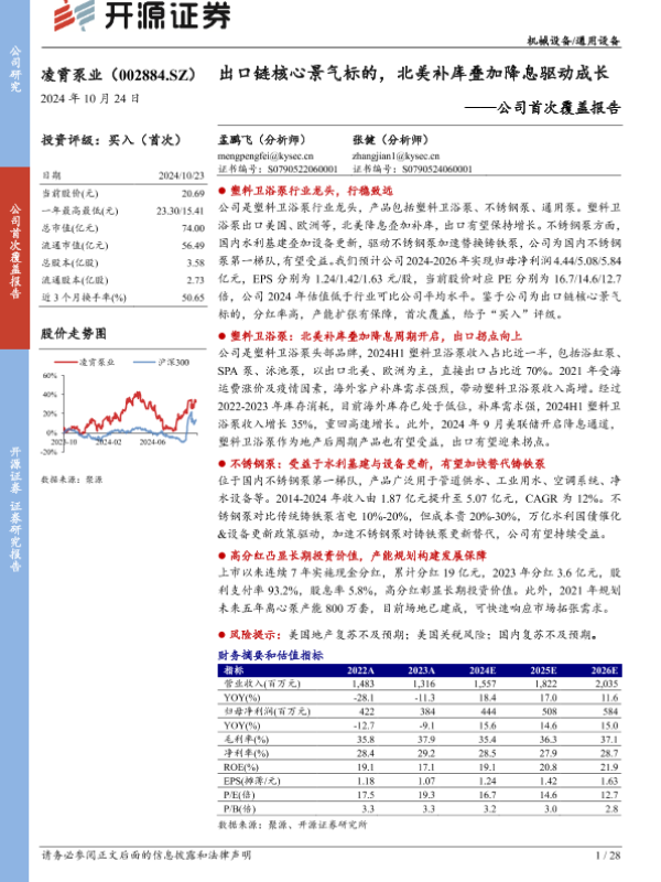 【开源证券】【20241024】凌霄泵业(002884)公司首次覆盖报告:出口链核心景气标的,北美补库叠加降息驱动成长-28页 行业研究