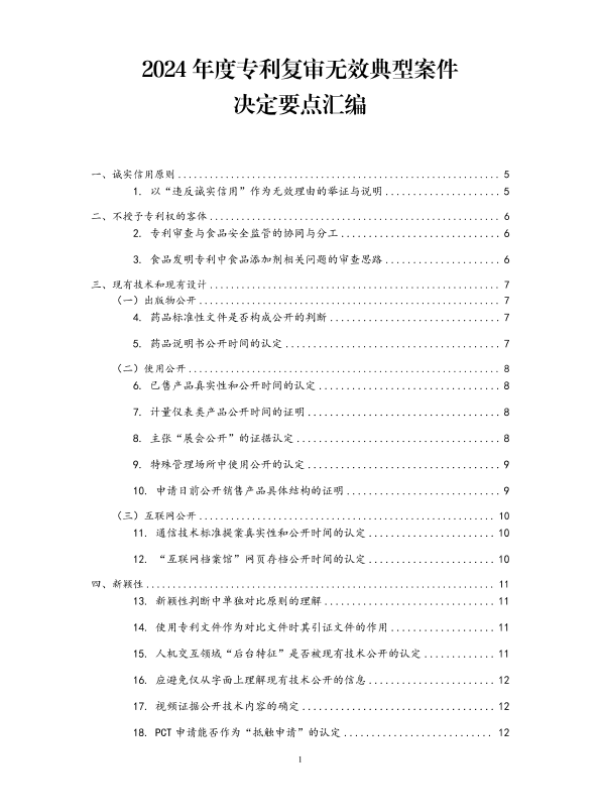 【国家知识产权局专利局复审和无效审理部】【2024】2024年度专利复审无效典型案件 决定要点汇编-36页 指南