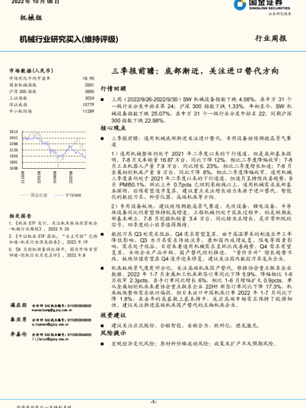 【国金证券】【20221008】20221008-国金证券-机械行业周报:三季报前瞻:底部渐近,关注进口替代方向-20页 行业研究