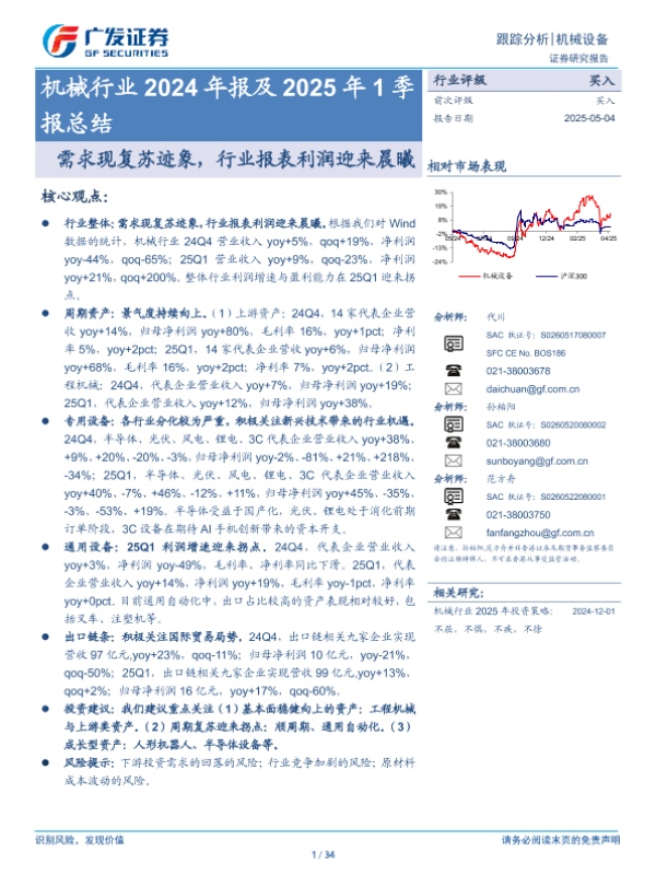 【广发证券】【20250504】机械行业2024年报及2025年1季报总结-34页 证券期货研究报告