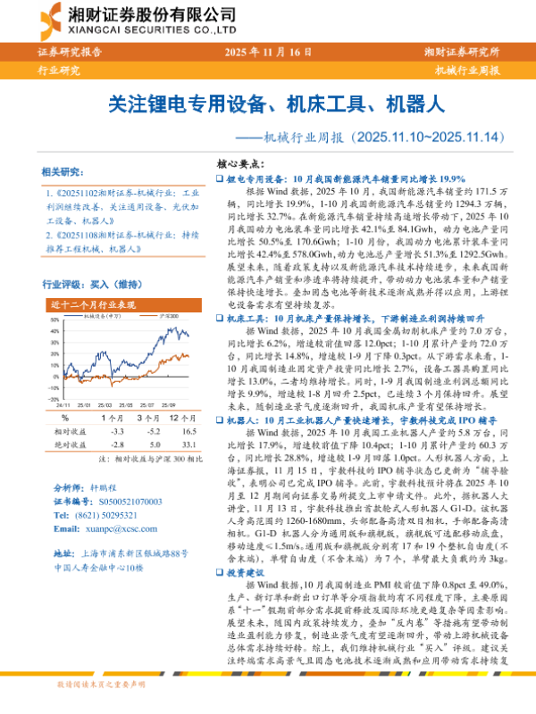 【湘财证券】【202511】机械行业周报(2025.11.10~2025.11.14)-16页 证券期货研究报告