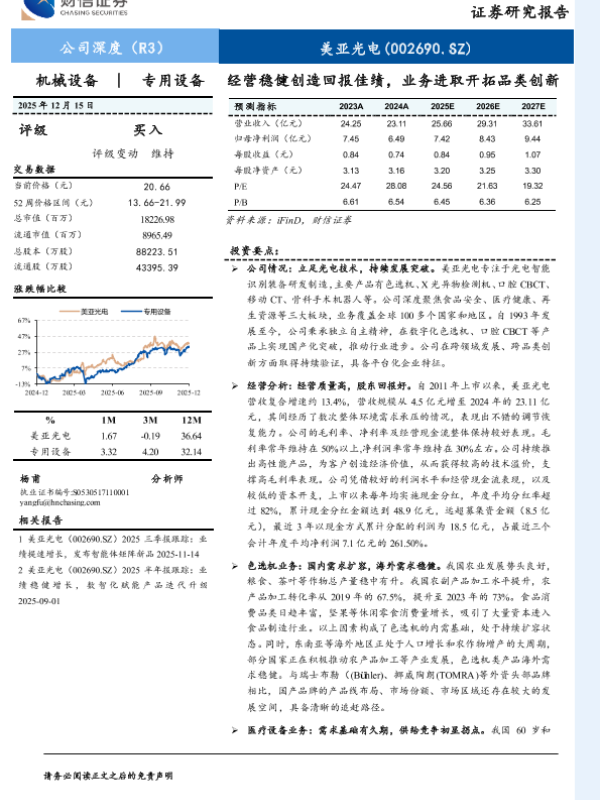 【财信证券】【202512】深度报告-20251215-财信证券-美亚光电-002690.SZ-经营稳健创造回报佳绩_业务进取开拓品类创新-29页 证券期货研究报告