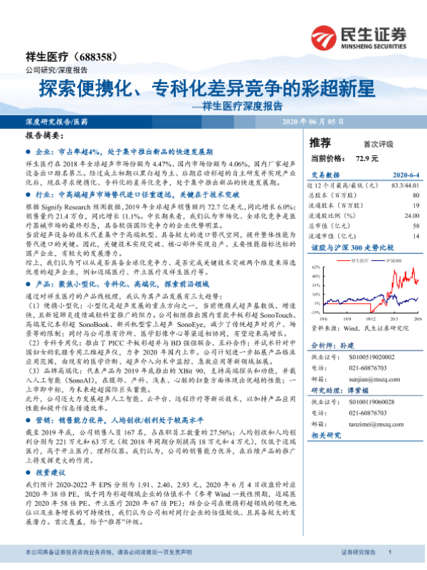 【民生证券】【20200605】祥生医疗深度报告:探索便携化,专科化差异竞争的彩超新星-25页 行业研究