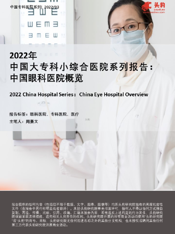【头豹研究院】【2022】中国大专科小综合医院系列报告:中国眼科医院概览-48页 行业研究