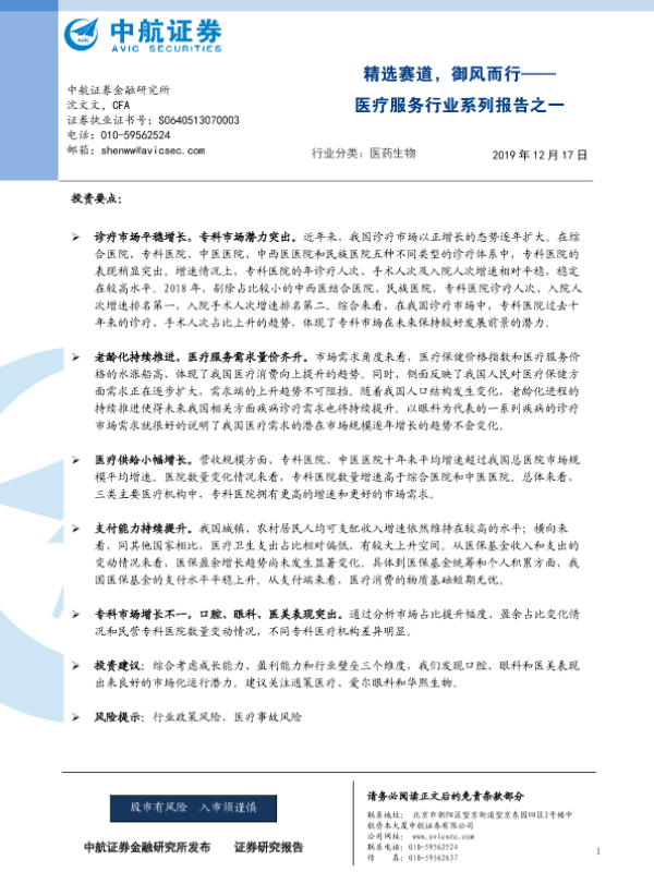 【中航证券】【20191217】医疗服务行业系列报告之一:精选赛道,御风而行-25页 行业研究