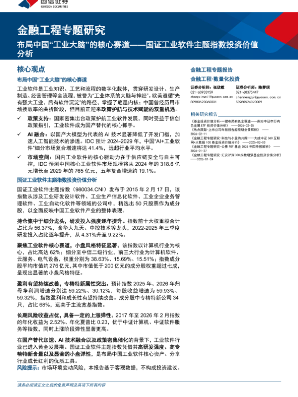 【国信证券】【202603】金融工程专题研究:布局中国“工业大脑”的核心赛道——国证工业软件主题指数投资价值分析-18页 证券期货研究报告
