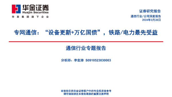 【华金证券】【20240328】通信行业专题报告:专网通信,“设备更新%2b万亿国债”,铁路/电力最先受益-69页 行业研究