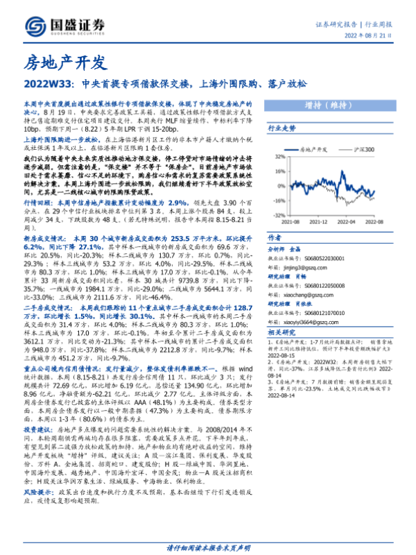 【国盛证券】【20220821】房地产开发行业周报2022W33:中央首提专项借款保交楼,上海外围限购、落户放松-13页 行业研究