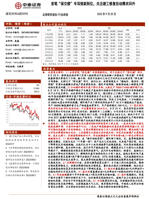【开源证券】【20220821】建筑材料行业周报:专项借款政策助力保交楼,关注板块底部机会-26页 行业研究