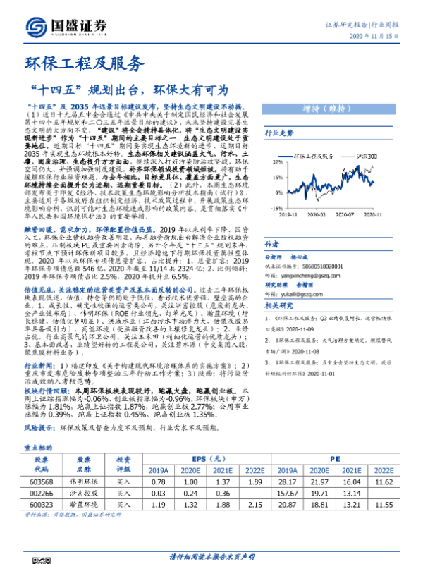 【国盛证券】【20201115】环保工程及服务行业周报:“十四五”规划出台,环保大有可为-14页 行业研究