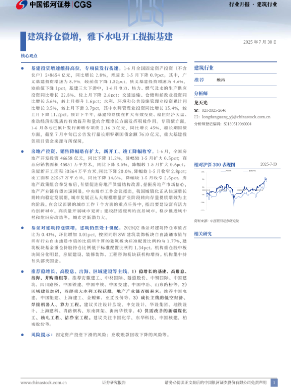 【银河证券】【202507】建筑行业月报:建筑持仓微增,雅下水电开工提振基建-20页 证券期货研究报告