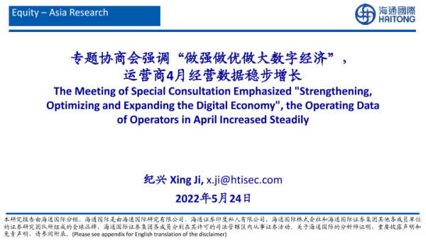 【海通国际】【20220524】专题协商会强调“做强做优做大数字经济”,运营商4月经营数据稳步增长-29页 行业研究