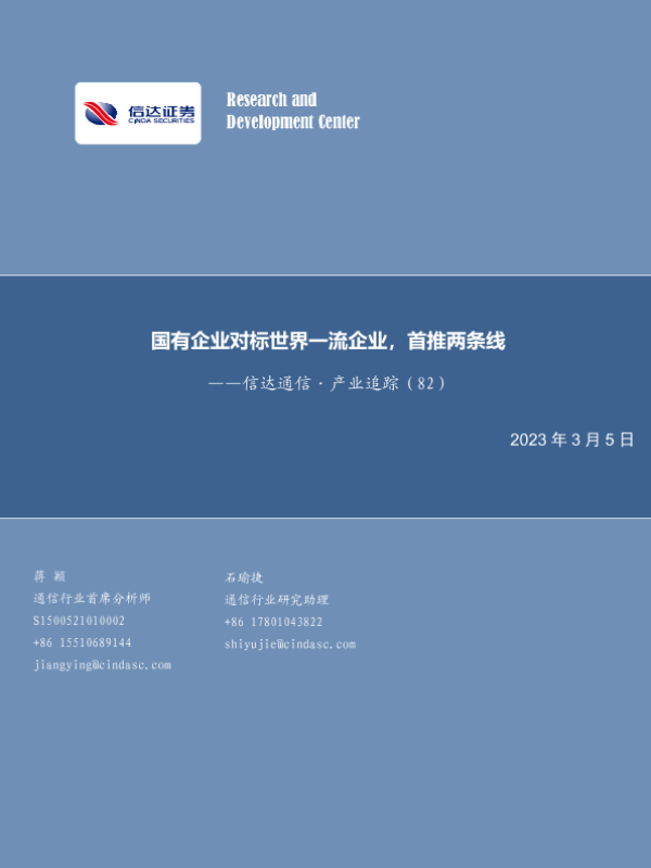 【国泰君安证券】【20230304】通信设备及服务行业2023年第10周周报:国资委启动国企对标世界一流企业行动,OFC开幕关注相干和CPO产业链进展-17页 行业研究