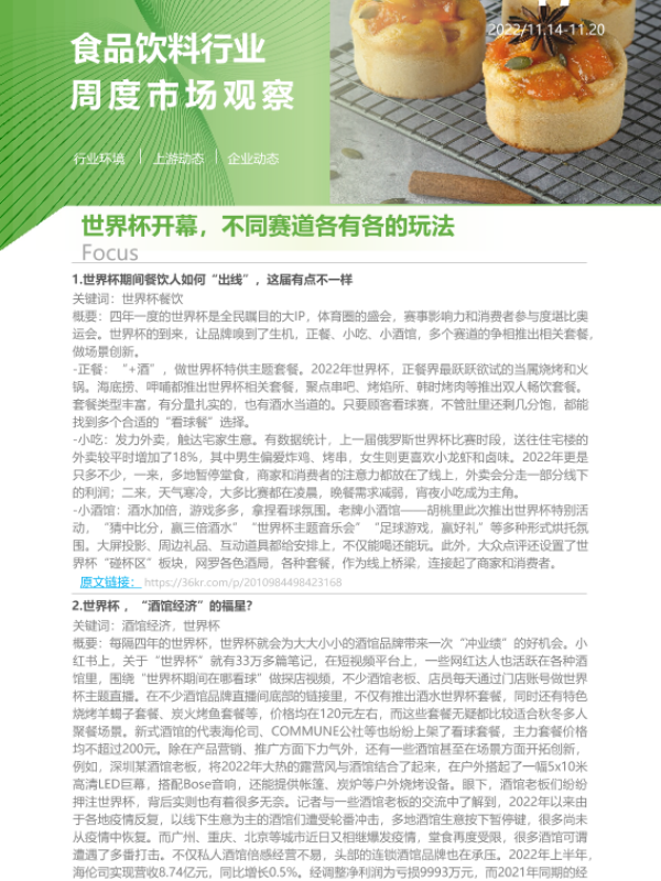 【艾瑞咨询】【20221114】2022年第47周:食品饮料行业周度市场观察-8页 市场调研