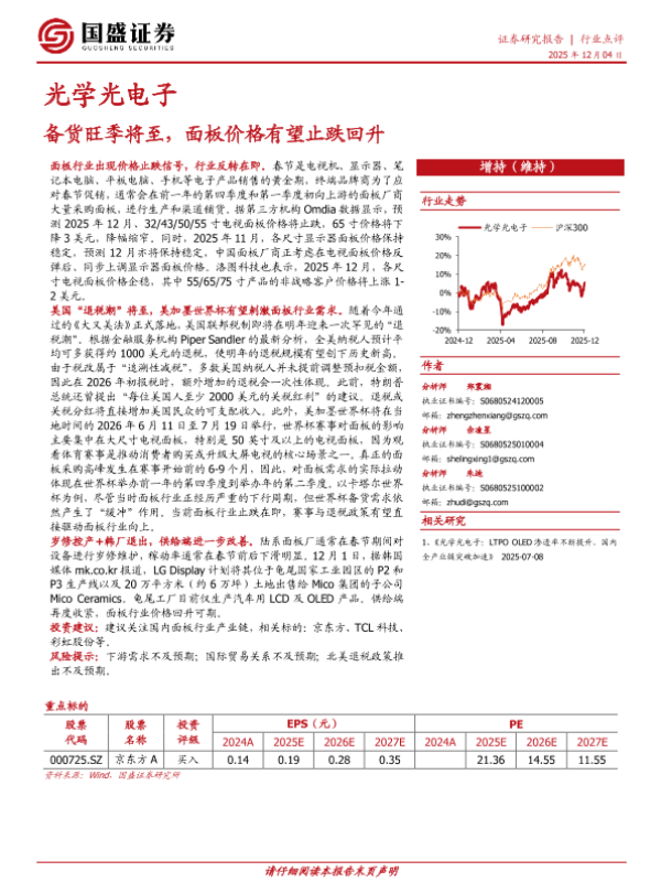 【国盛证券】【202412】光学光电子_备货旺季将至_面板价格有望止跌回升-2页 证券期货研究报告