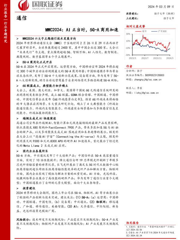 【国联证券】【20240309】通信行业专题研究:MWC2024,AI正当时,5G-A商用加速-16页 行业研究