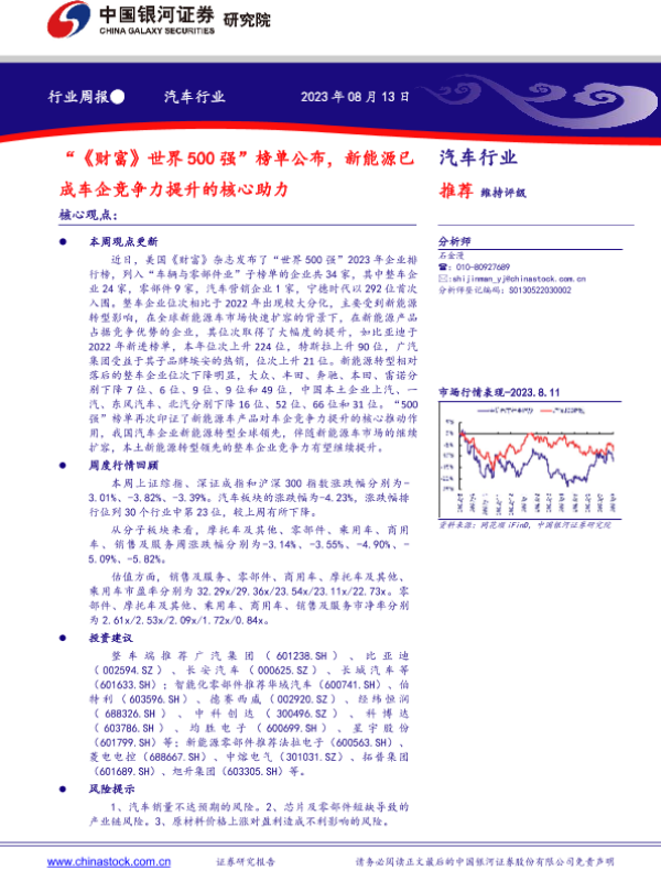 【银河证券】【20230813】“《财富》世界500强”榜单公布,新能源已成为车企竞争力提升的核心助力-12页 行业研究