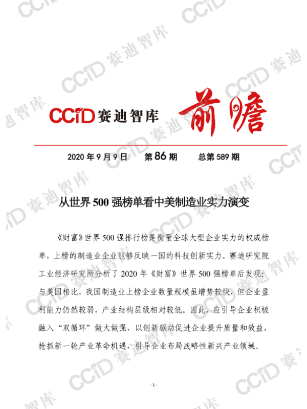【CCID赛迪智库】【20200909】从世界500强榜单看中美制造业实力演变-10页 行业研究