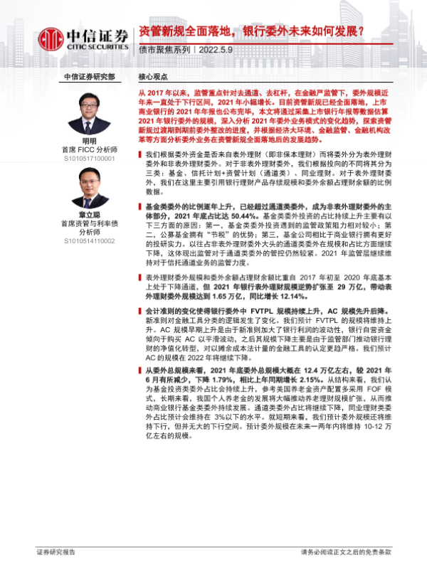 【中信证券】【20220509】债市聚焦系列:资管新规全面落地,银行委外未来如何发展?-25页 行业研究