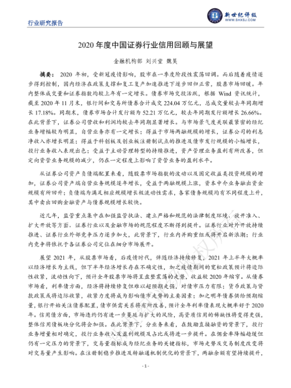 【新世纪评级】【202101】2020年度中国证券行业信用回顾与展望-36页 行业研究