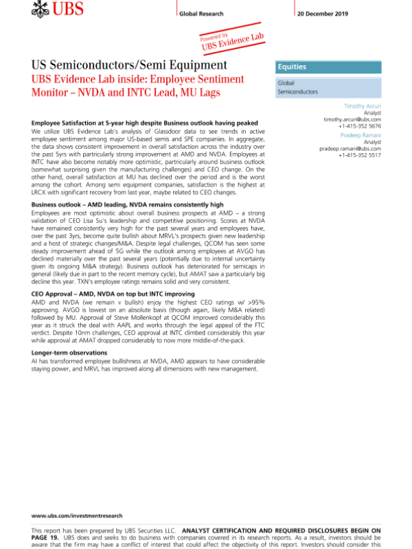 【瑞银】【20191220】瑞银-全球-半导体行业-美国半导体设备企业:员工情绪监测-26页 行业研究