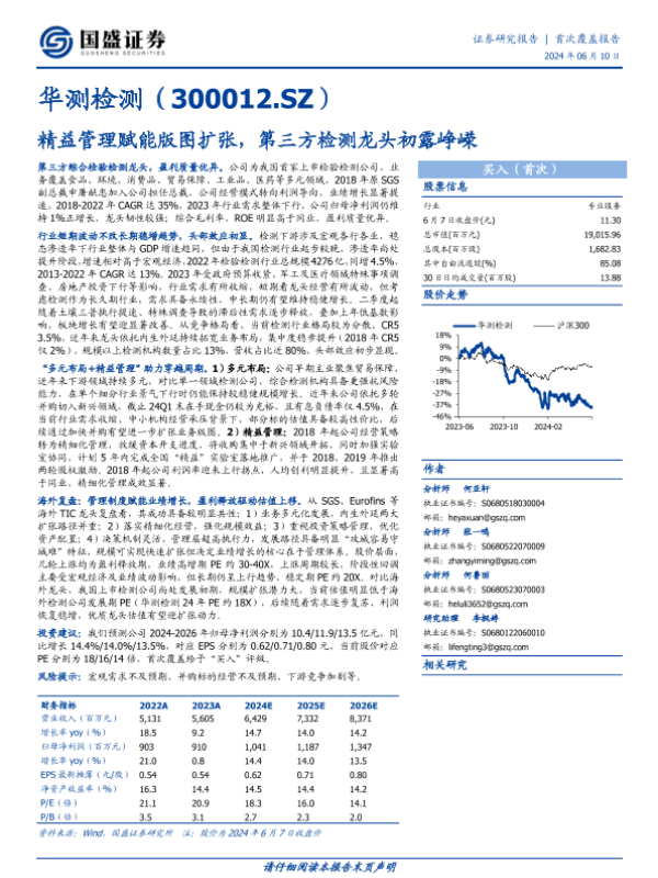 【国盛证券】【20240610】精益管理赋能版图扩张,第三方检测龙头初露峥嵘-43页 行业研究