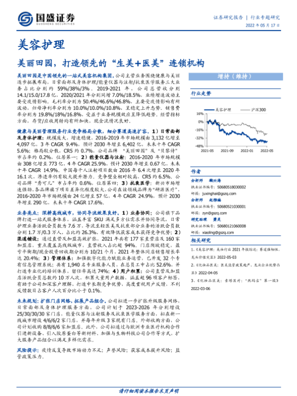 【国盛证券】【20220517】美容护理行业专题研究:美丽田园,打造领先的“生美+医美”连锁机构-27页 行业研究