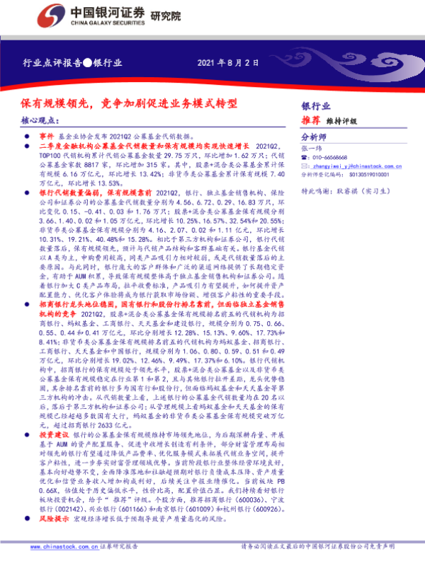 【银河证券】【20210802】保有规模领先,竞争加剧促进业务模式转型-4页 行业研究