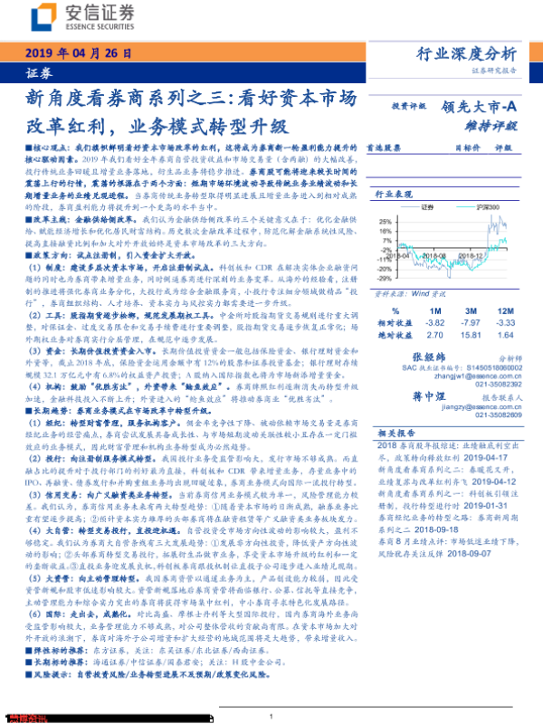 【安信证券】【20190426】证券行业深度分析:新角度看券商系列之三:看好资本市场改革红利,业务模式转型升级-42页 行业研究