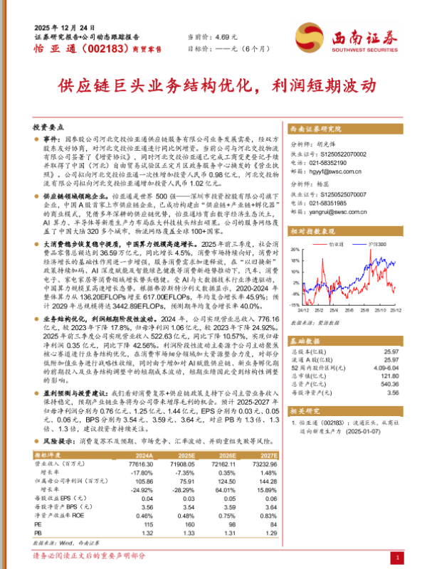 【西南证券】【202512】供应链巨头业务结构优化,利润短期波动-6页 证券期货研究报告